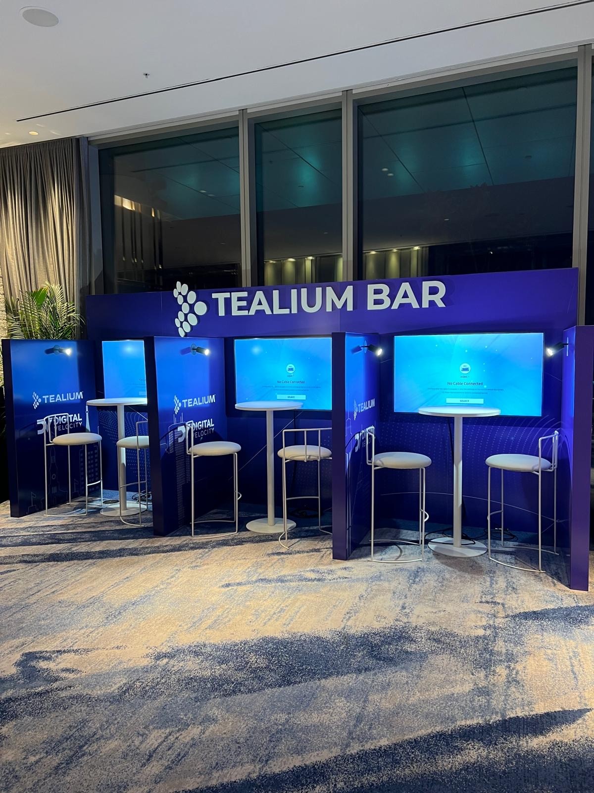 By pre-assembling and clearly labeling each component, we were able to get everything in place smoothly, even with limited load-in access and tight deadlines. The accurate reproduction of Tealium's specific brand colours was also a top priority, and we made sure the final result was perfect.
